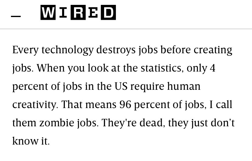“When you look at the statistics, only 4 percent of jobs in the US require human creativity.”