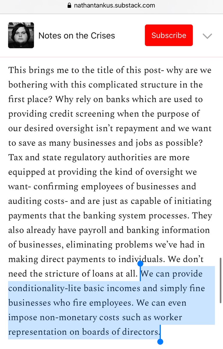 Super interesting idea: provide a sort of “universal basic income” to businesses.