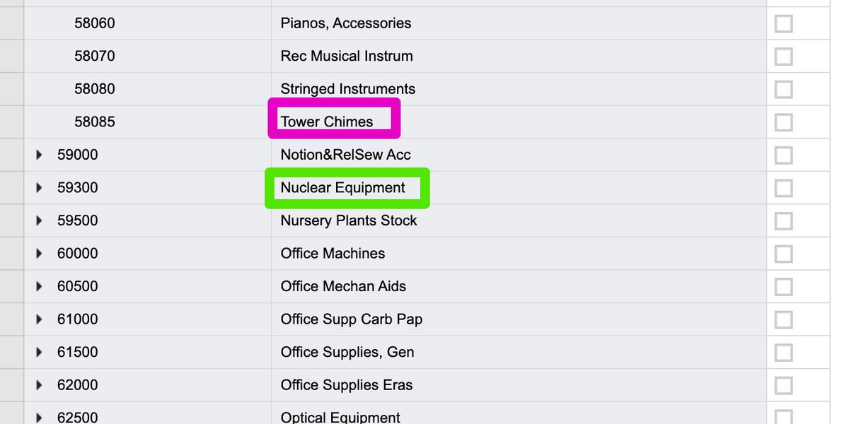 "Tower chimes" is vendor category, sitting right next to "nuclear equipment."🤣